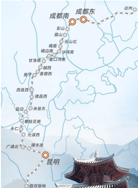 成昆复线于2007年10月开工建设,采取分段建设、分段运营模式推进,成都南至峨眉、冕宁至米易东等分段已于此前陆续开通运营。