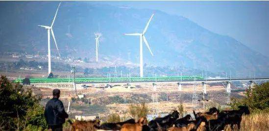 德昌黄水镇66岁的彝族老人呷日波日正在山坡放羊,远处一列“绿巨人”动车组快速驶过(刘忠俊 摄,图片来源:中新网)