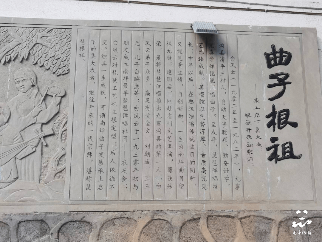 今天,白凤云故里的清平三村修建了纪念他的“清平乐”文化小巷,在巷子的牌坊口,有楹联一副:三弦如椽笔,琵琶寻根唯此巷;五音即文章,盛世欢歌乐清平。既是对白凤云为南坪曲子所做贡献的肯定,也是南坪曲子这一国家级非物质文化遗产获得新生的真实写照。