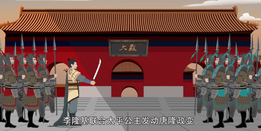 李隆基(即后来的唐玄宗)刚当太子不久,为加强皇家警卫,特奏请唐睿宗批准,把左右万骑、左右营改为龙武军,与左右羽林军并称“北门四军”。