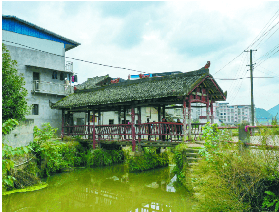 望着桥头立着的信息牌,廊桥的历史变得清晰起来。吴春华说,过去常听附近的老人提起,以前因观凤河阻碍着居民往返,出行非常不便,为解决这一问题,当地老百姓便于清嘉庆年间建成了这座楼子廊桥。因其横跨观凤河,还被大家称为“过江楼”。2017年,该廊桥被认定为市级文物保护单位。