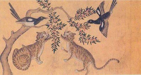 上图:朝鲜岁画鹊虎图;下图:日本七福神浮世绘年画 图/Wikipedia