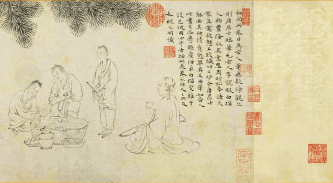 在唐诗中,“浊酒”还有“蚁浮”“浮蚁”“醪”等别称。浊酒的酿造工艺简单,相对寡味,一般百姓家庭即可酿造,陆游诗有“农家腊酒”,即浊酒。与“浊酒”相对应的则是“清酒”,它选用小米、玉米等黏性小的粮食酿制、蒸馏而成,酒精浓度高、糖分少、色泽相对清透,饮用时无须过滤。酿造清酒的工艺复杂,清酒醇香甘洌,价格不菲,在古代通常为贵族享用。
