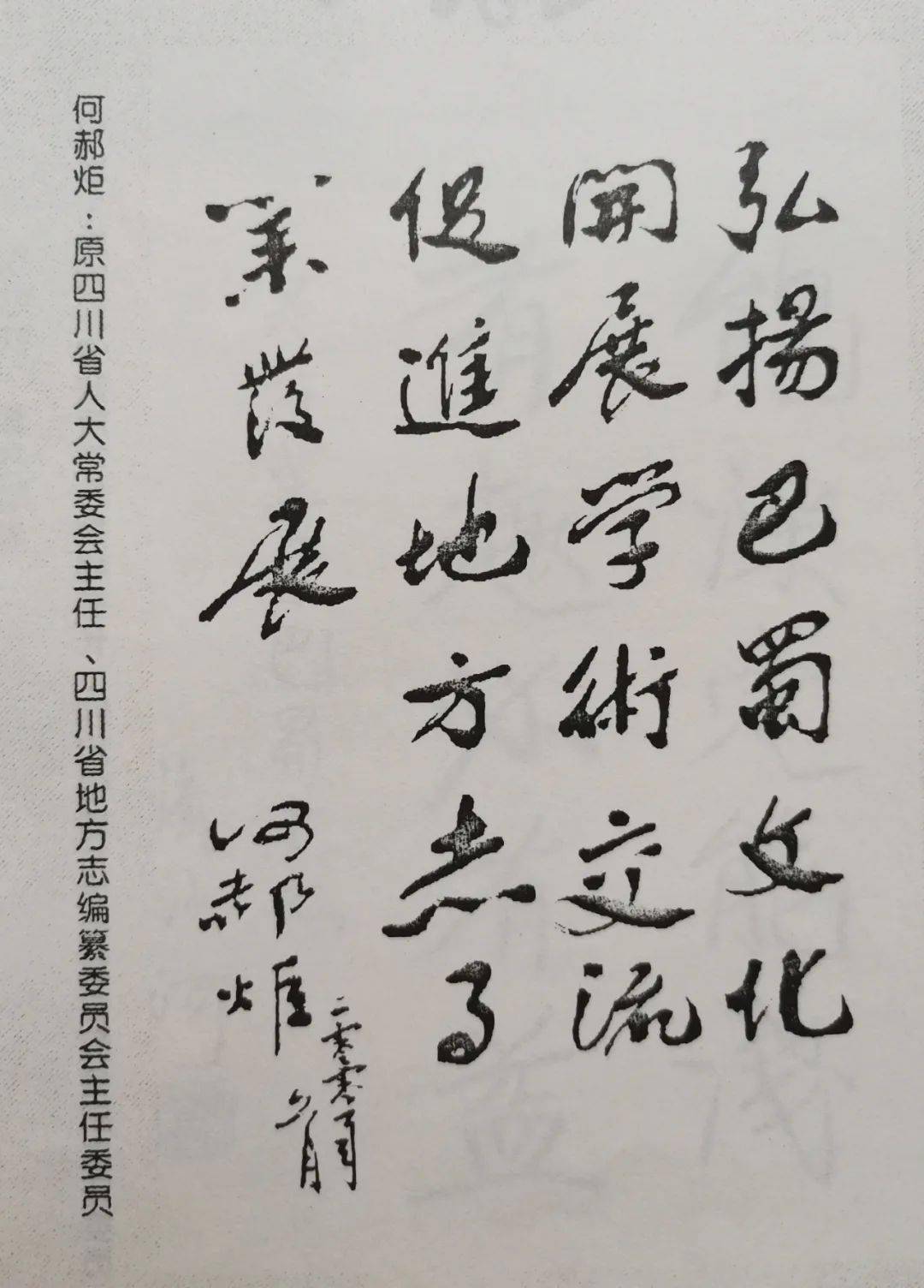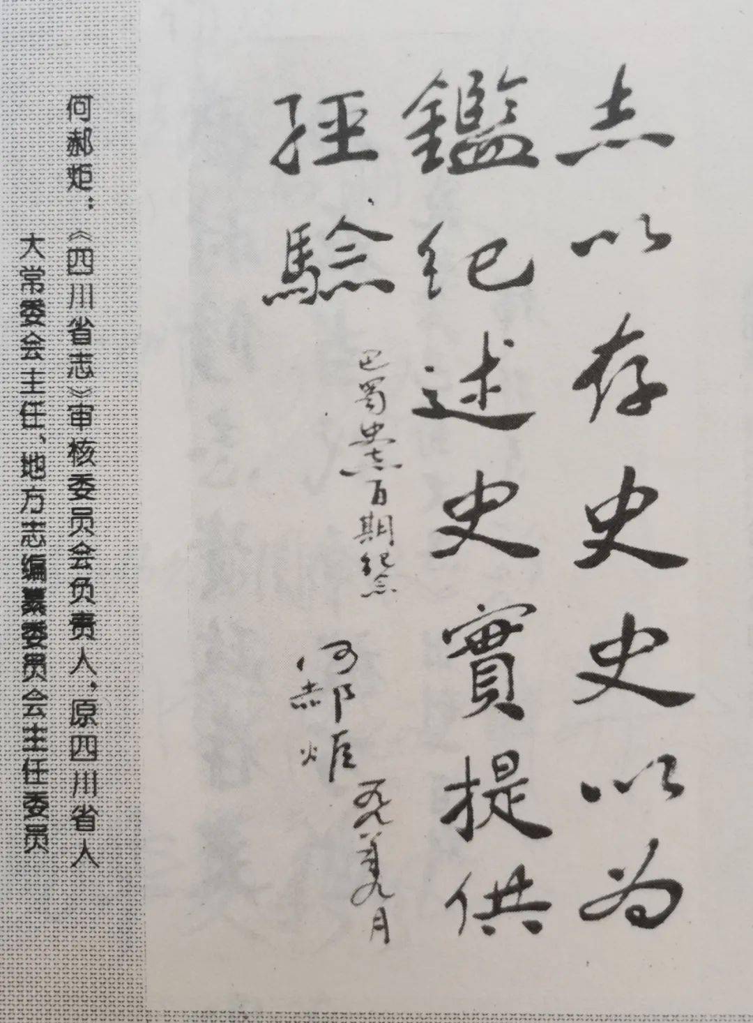 2000年2月,何郝炬先生为《巴蜀史志》题词