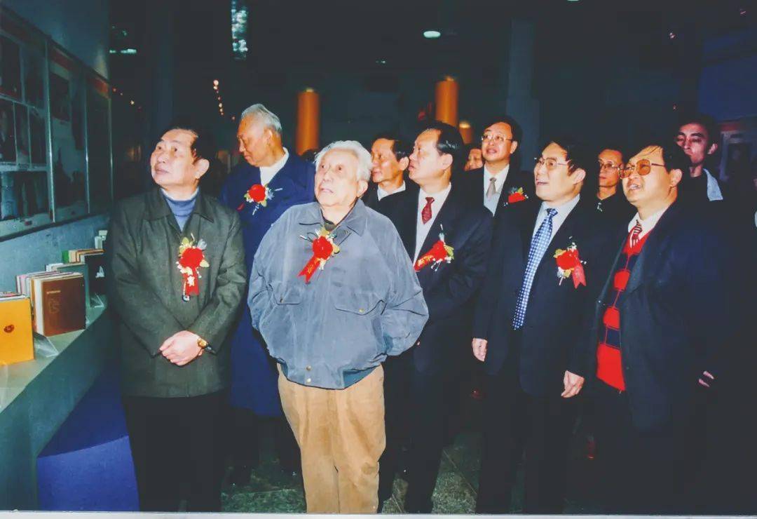 2000年11月16日,何郝炬(前排右)参观四川省地方志成果展