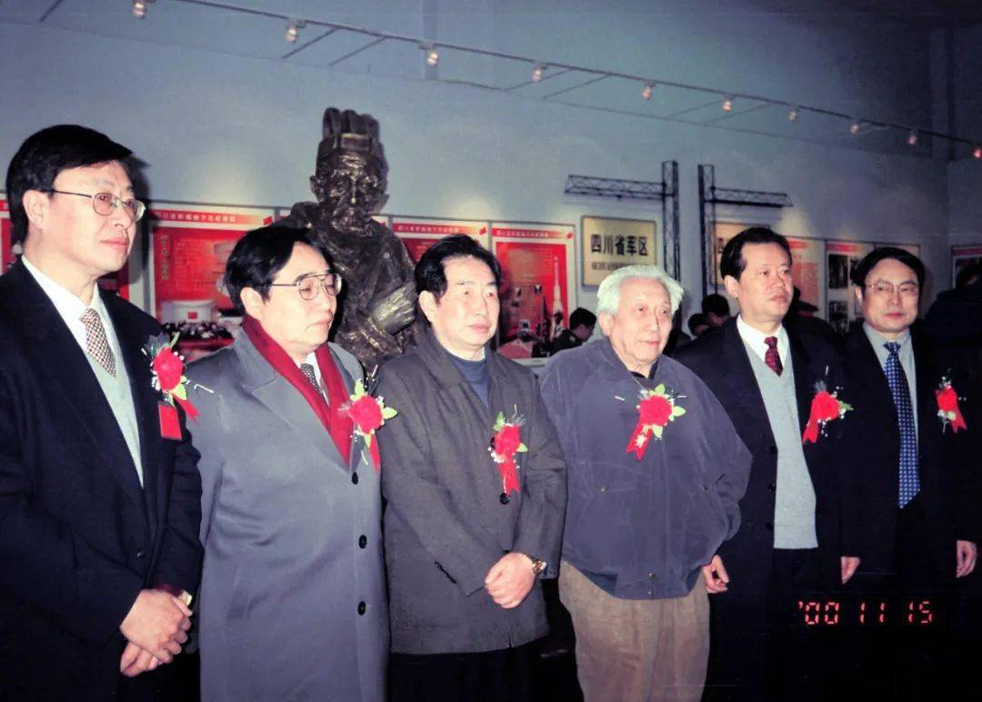 2000年11月16日,何郝炬(左四)与霍力进、单天伦、聂荣贵、张中伟、杨崇汇等领导在四川省地方志成果展览上
