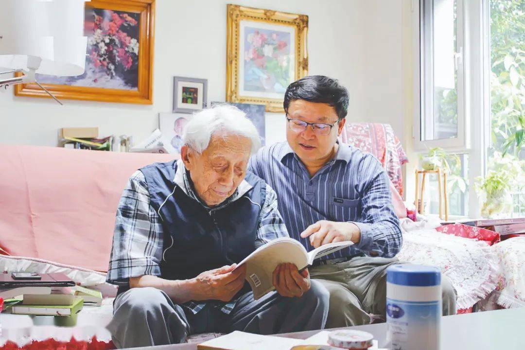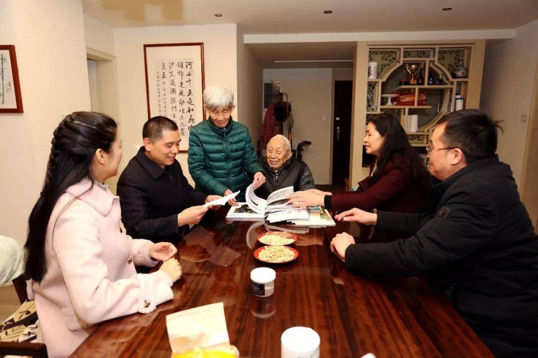 2020年1月21日,四川省地方志工作办公室党组书记、主任陈建春(左二)率领导班子成员拜望省人大常委会原主任、 四川省地方志编纂委员会原主任委员何郝炬先生(右三)。图为何郝炬阅读四川省地方志办编辑出版的《巴蜀史志》期刊