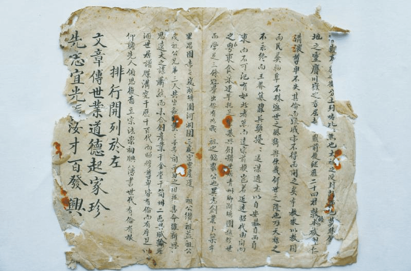 被刘德忠从火里抢救回来的《刘氏族谱》谱序残页,上面还有灼烧的痕迹