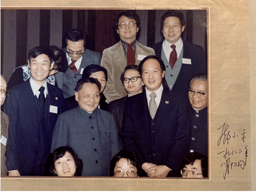 1979年2月4日,邓小平与西雅图当地华侨合影留念(第二排左1为笔者臧英年),1982年8月邓小平在照片旁签字