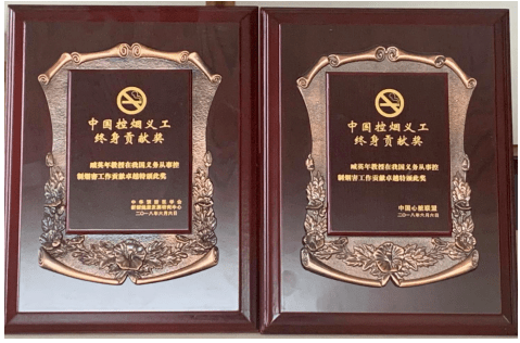2018年,臧英年荣获两个中国控烟义工终身贡献奖