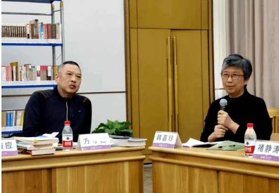 2023年3月24日,王晓波教授纪念座谈会在清华大学图书馆会议厅举行。图为王晓波家人代表方守仁先生、韩嘉玲女士动情追思晓波