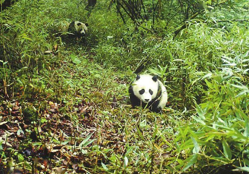 2020年10月,大熊猫国家公园宝兴蜂桶寨片区中坝管护站红外相机拍摄到一对野生大熊猫母子同框活动的珍贵场景(大熊猫国家公园管理局 供图,图片来源:四川日报)