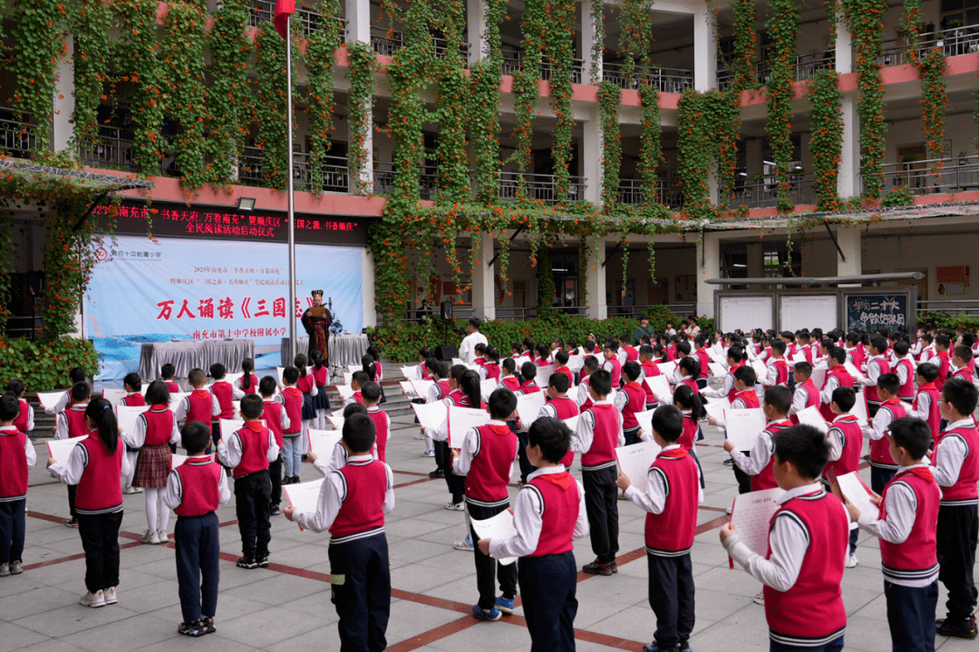 在第28个“世界读书日”到来之际,4月19日,2023年南充市“书香天府·万卷南充”暨顺庆区“三国之源·书香顺庆”全民阅读活动启动仪式在北湖公园举行。当天,顺庆区组织辖区中小学校以及高等院校学生、普通市民、文艺爱好者等上万人齐诵摘录于南充籍史学家陈寿所著《三国志》的五百字嘉言录,诵读经典、共品书香、共建书香社会。