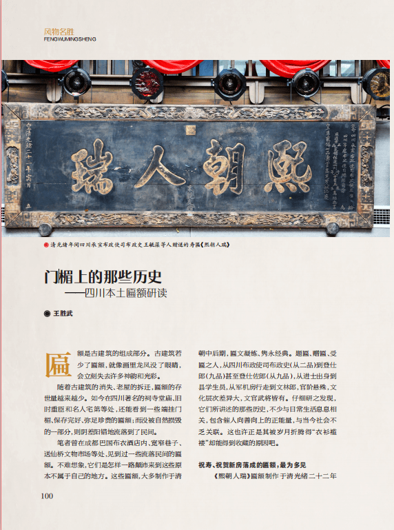 【历史文化】门楣上的那些历史 ——四川本土匾额研读‖王胜武