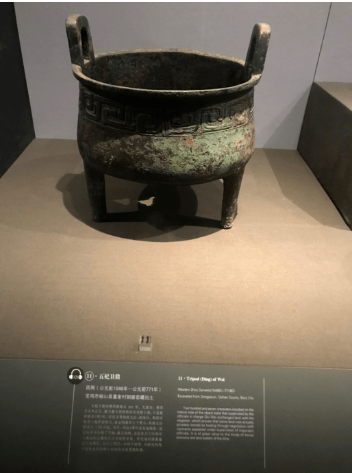 进入第一展厅,里面主要展出了距今115万年前的蓝田猿人、半坡文化、西周青铜器和以兵马俑为代表的秦文化。这里面有3件国宝:西周旟鼎、西周五祀卫鼎、西周多友鼎。