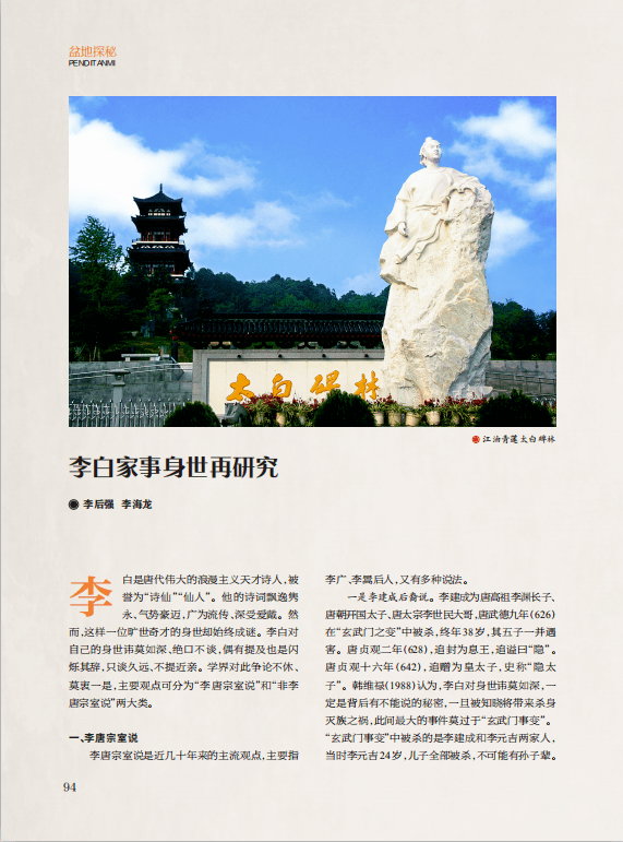 【历史文化】李白家事身世再研究‖李后强 李海龙