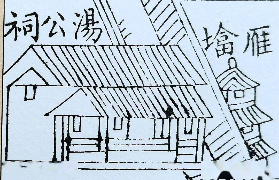 明时,安岳汤公祠为重堂,颇具规模,建于县正街,后移建黉宫西。清嘉庆时移建文昌宫(本图载清道光《安岳县志·文庙书院图》)