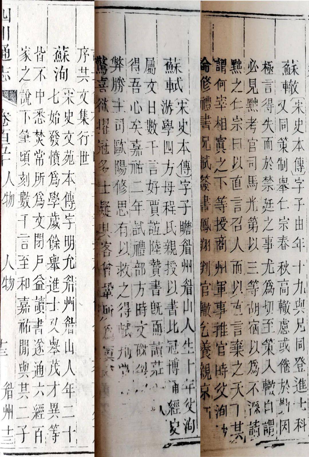 《宋史·文苑本传》记载的苏洵、苏轼、苏辙(部分内容),见清嘉庆《四川通志·人物》(卷150)