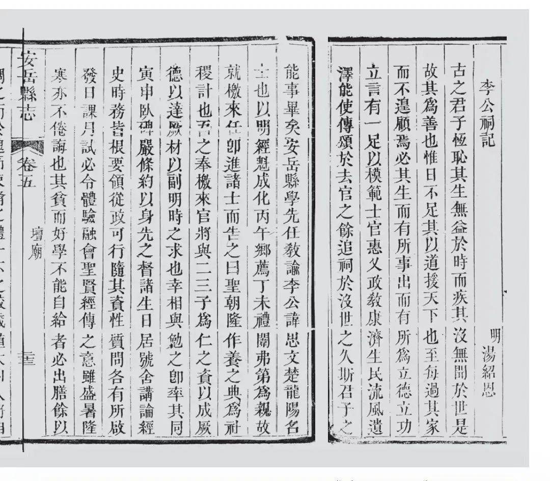 《李公祠记》汤绍恩文,载清道光《安岳县志·坛庙》