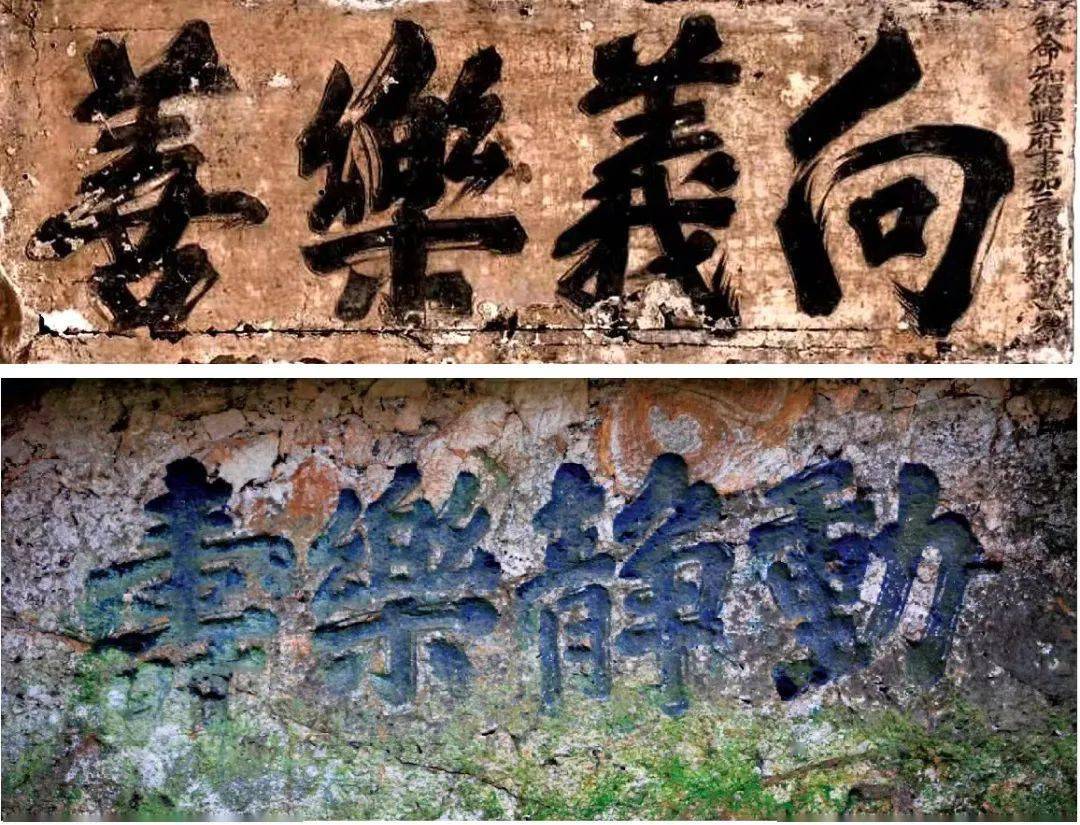 汤绍恩书法:向义乐善、动静乐寿(刻于绍兴龙山北侧岩壁