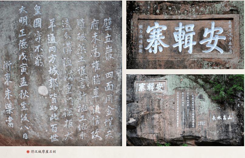 得汉城摩崖题刻异彩纷呈,数量众多。其中明清时期的摩崖题刻达30 多处,主要分布在南门和东门石壁上。现录部分于后: