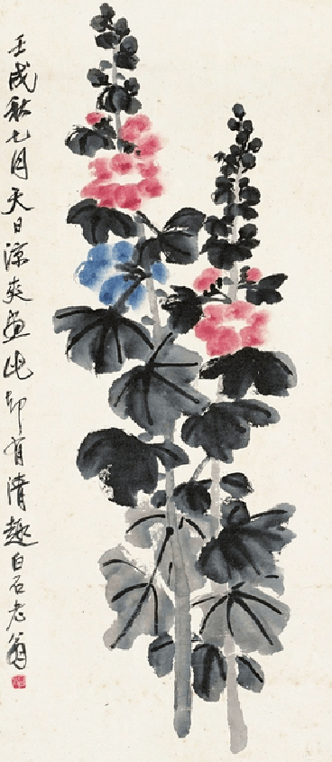 壬戌蜀葵立轴 1922年齐白石作(图片来源:华西都市报)