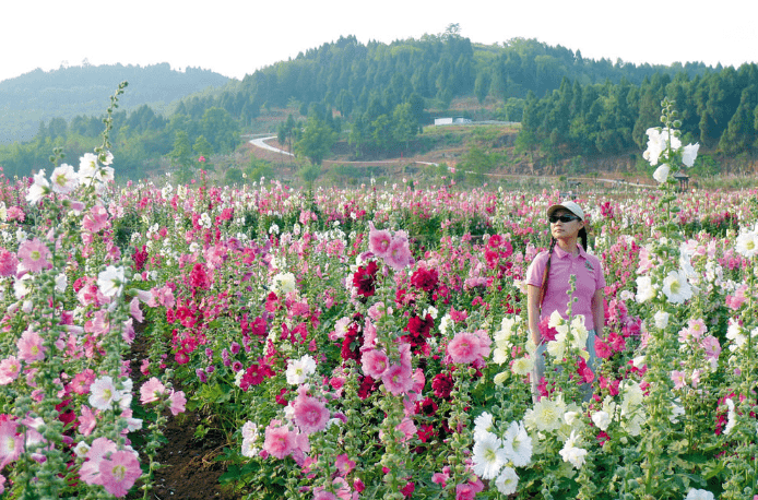 成都鲜花山谷蜀葵盛开(图片来源:成都日报)
