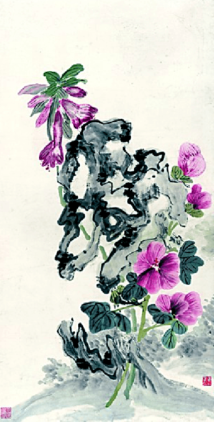 《蜀葵玉簪湖石》(中国画) 黄宾虹 作(图片来源:光明日报)