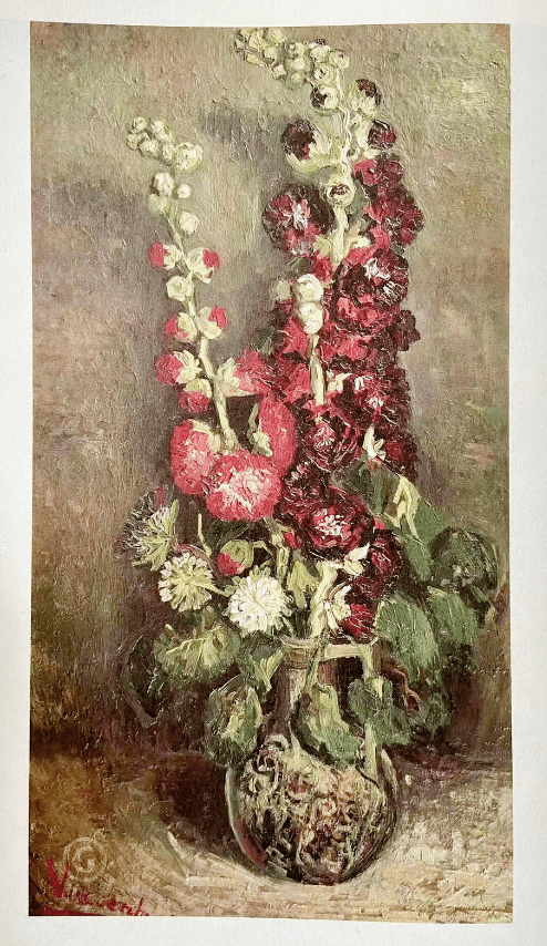让人惊讶的是,书中还有“耶稣遇难”场景的蜀葵、“伊甸园”的蜀葵和梵高画中的蜀葵。阅读此书后,我们会有一种感觉,欧洲是伴随中国蜀葵的输入而推进文艺复兴,在欧洲许多著名美术作品中,都可以找到蜀葵的身影!可以说,蜀葵元素充斥中整个欧洲花坛,成为画家灵感的起搏器和动力源,创作的兴奋剂和多巴胺。