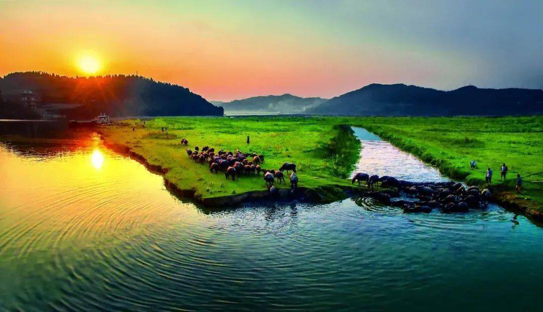 青草郁郁的漫滩湿地,牛羊、白鹭、水鸟,牧童,那江面的晨昏光影,构成了一幅天地人和的自然之景,朝晖夕影,气象万千,赋予了司马相如的心灵一片沃土。