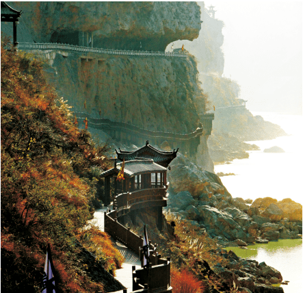 栈道,又名阁道,是中国古代人民在今川、陕、甘、滇诸省丛山峻岭中的峭崖陡壁之上,凿孔架木连阁而成的一种道路。
