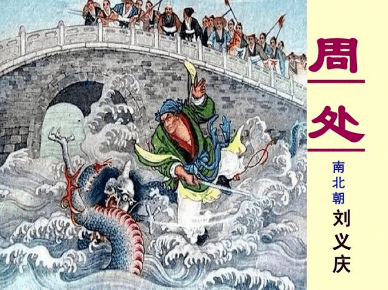 周处年少时,凶强侠气,为乡里所患;又义兴水中有蛟,山中有邅迹虎,并皆暴犯百姓;义兴人谓为“三横”,而处尤剧。或说处杀虎斩蛟,实冀“三横”唯余其一。而处即刺杀虎,又入水击蛟,蛟或浮或没,行数十里,处与之俱。经三日三夜,乡里皆谓已死,更相庆。处竟杀蛟而出,闻里人相庆,始知为人情所患,有自改意,乃自吴寻二陆。平原不在,正见清河,具以情告,并云:“欲自修改,而年已蹉跎,终无所成!”清河曰:“古人贵朝闻夕死,况君前途尚可?且人患志之不立,亦何忧令名不彰邪?”处遂自改励,终为忠臣孝子。