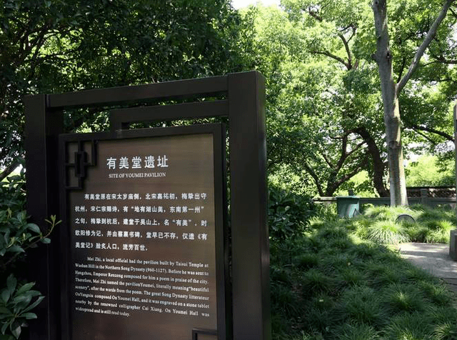 梅挚在杭州吴山顶修建有美堂,堂名取自宋仁宗诗句:地有湖山美……欧阳修作有《有美堂记》,苏轼作三首有美堂诗:有美堂暴雨,虞美人有美堂赠述古,会客有美堂周邠长官与数僧同泛湖往北山。沈遘三首诗:依韵和卢中甫有美堂公诸年契,依韵和王岩夫有美堂公诸年契,依韵和杭州施正臣与李审言王道粹宴有美堂唱酬。