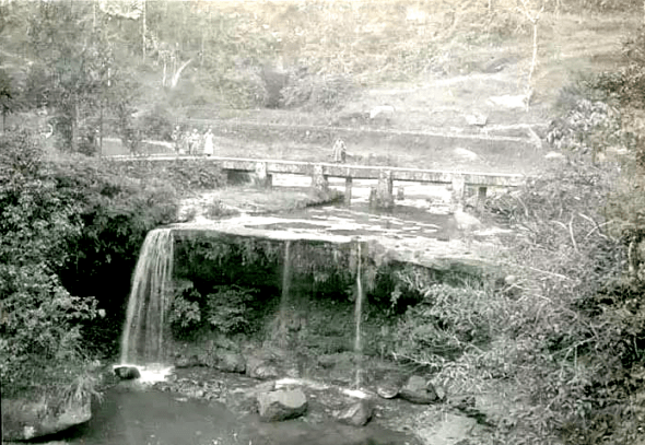 “珙县文旅”公众号配发的一张一百多年前拍摄的已显灰黄的黑白照片,主景是山岭溪河瀑布上横跨着的一座石墩桥,桥面上站立着几个留长辫、穿长衫的清朝老百姓,他们正怡然自得地面向镜头方向,显然和拍摄者有某种神情的交流,说不定他们就是葛维汉的向导和随从呢。从照片中山岭的地貌,石桥石墩的形状,溪河瀑布的流向,以及周围田亩和河坎的地形地貌来看,经过与现在安和第一桥的形状作认真比对,人们惊讶地发现,照片中反映的场景和石桥,当属胜天镇安和村第一桥无疑。