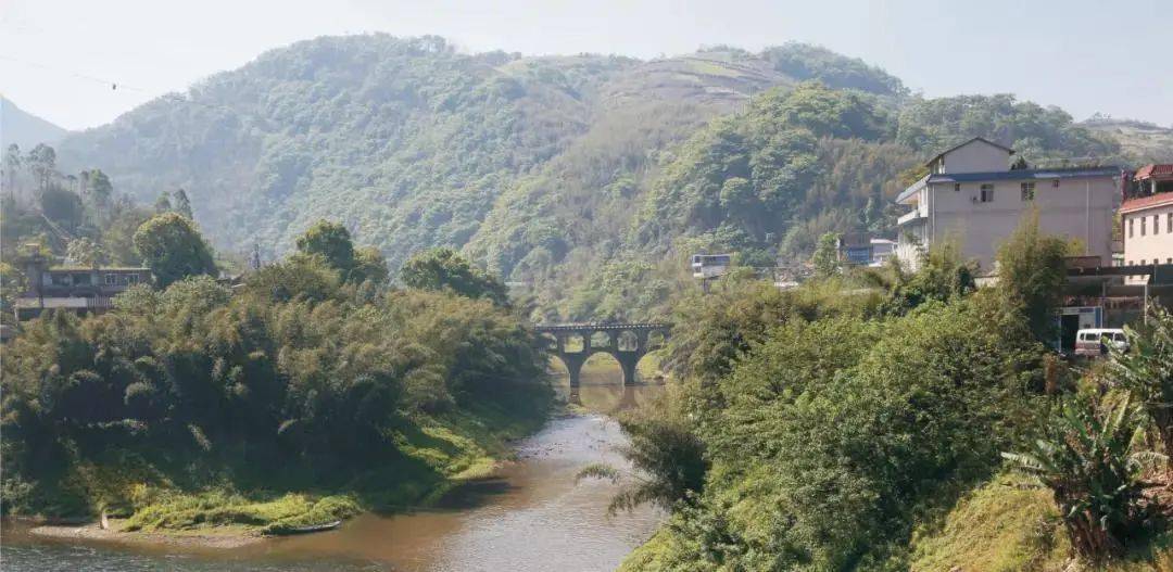 黄水口大桥地处复宁河宋江河汇合处的古关隘“剑南十三关”,石拱桥横跨宋江河, 桥下河滩是县属古八景“春浪跃渔”景点(图片来源:高县人民政府网)