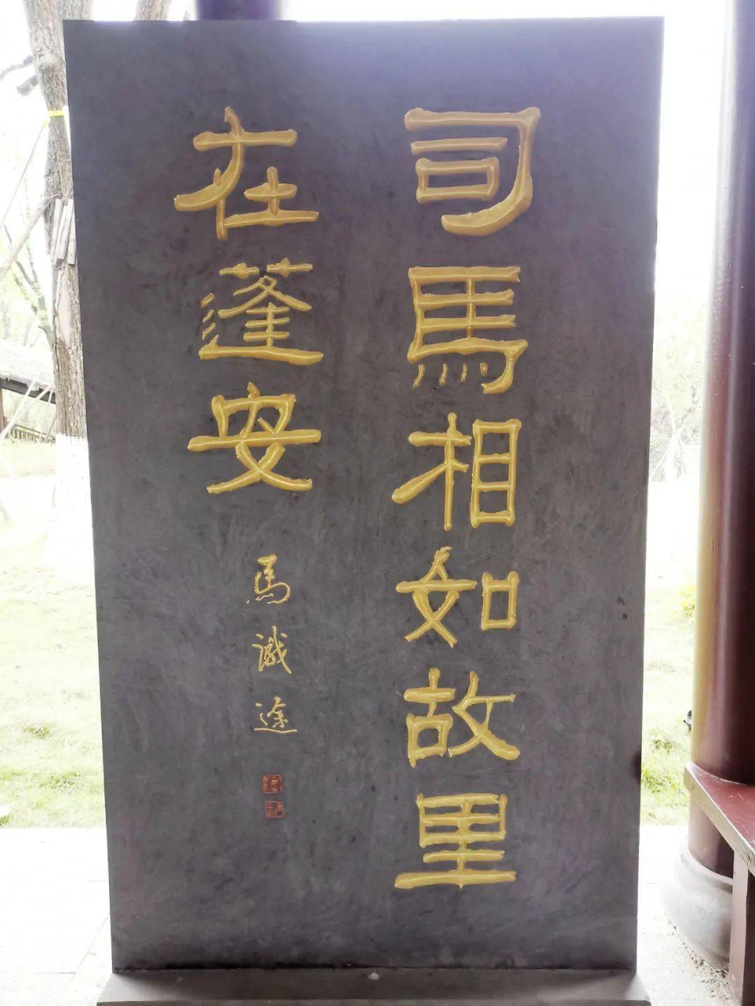 日月光华,恒映澄澈嘉陵。星汉璀璨,永现伟人身影。公生于斯,厚得江山滋育;显贵于朝,遂建殊世业勋。赓续巴蜀文脉,赋惊汉廷人君。气象恢弘,标树辞赋典型。泽润历代,声播四外海瀛。奉使西南,宣大一统国策;解纷通路,定华夏于一尊。万世推功,青史垂名。公天纵聪睿,好学勔勤。求索进取,善作善成。博通诸子,精擅六经。撰述古蜀史志,制定礼乐纲领。亦治小学、研博物、造歌诗、弄弦琴。浪漫风致,赢得美满婚姻;抚时忧国,悯怀黎庶苍生。公诚乃博雅文豪、贤哲良臣、旷世英才、非常之人也!