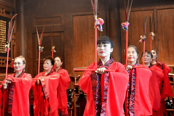 蓬安县相如国学中心文化传习人员表演佾舞(彭圣洲 摄)