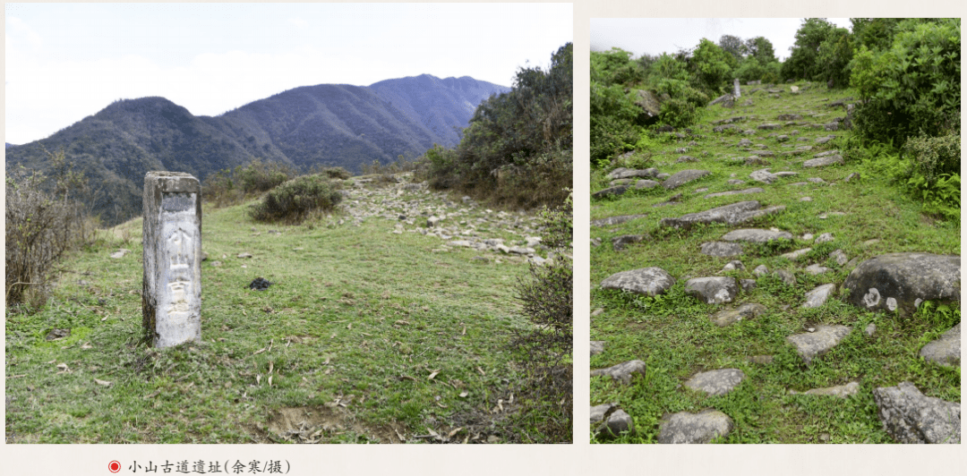 小山古道遗址位于越西县南箐乡小山村,是零关古道的一段。越西县城南通往文昌帝君所在的文昌庙路边石崖上,至今仍镌刻着斗大的“零关”二字(据悉,此为清代浙江人氏、民国初任上川南观察使粱正麟所书)。这是南方丝绸之路零关古道上留下的重要遗存。距“零关”二字百米开外,有一处不舍昼夜的越西河,河面有一陈年老桥唤名零关桥,此桥建于明嘉靖年间,迄今已有500多年历史,因由两块达10余吨的巨石搭建而成,又得名双石桥。