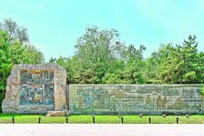 北京金中都公园内营城建都雕塑 资料图片