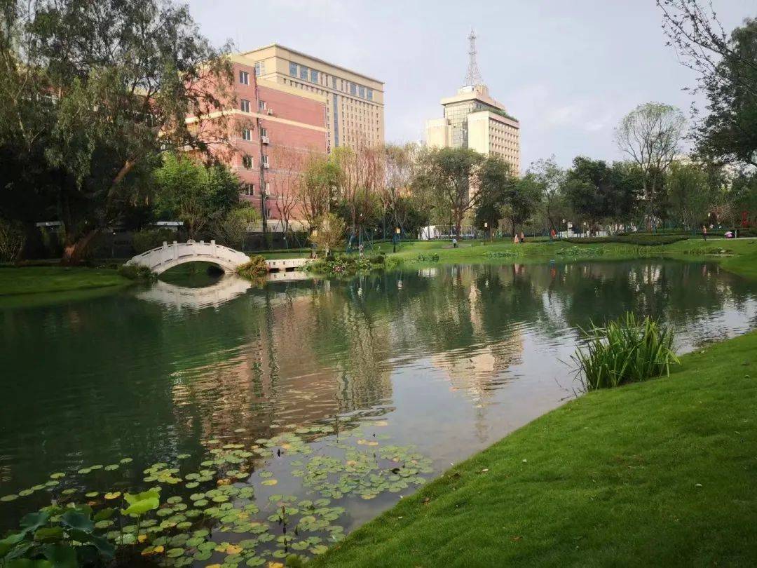 据历史记载,不少湖池曾存在于成都城区,其中城中心最大的湖池就是摩诃池,摩诃池也是当时成都著名的历史园林。《华阳国志》就曾记录战国晚期时,成都“城北又有龙坝池,城东有千秋池,城西有柳池,冬夏不涸,其园囿因之”。《水经注》一书又补充了成都城市有天井池,之后又有了龙跃池。