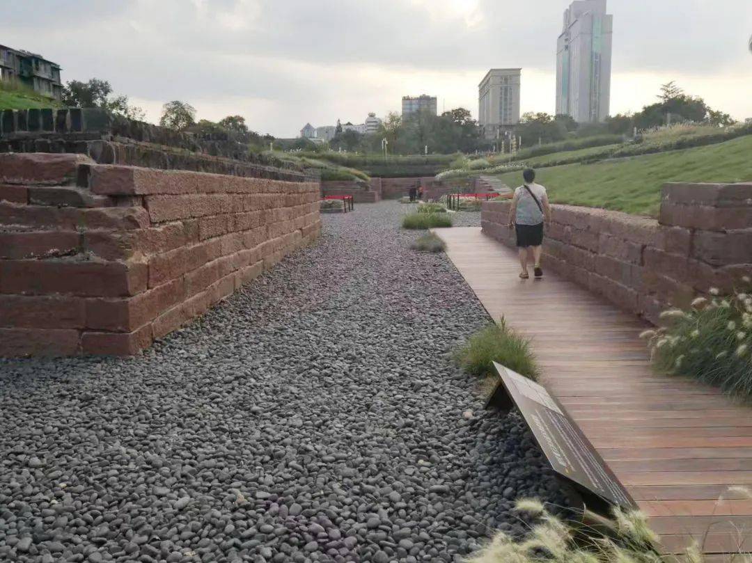 7月20日这天下班后,笔者特地先乘坐公交车,再骑共享单车,高温天气下汗流夹背,实地行走成都东华门遗址公园,亲身感受其厚重历史。