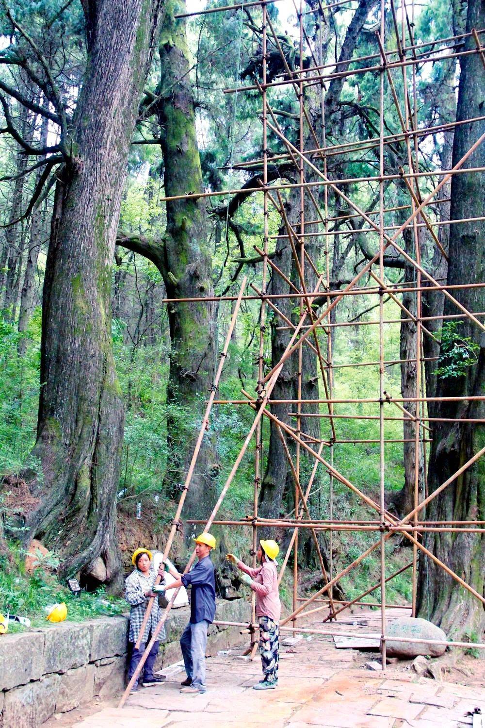 古柏保护施工现场( 梁元杰 摄,图片来源:广元日报)