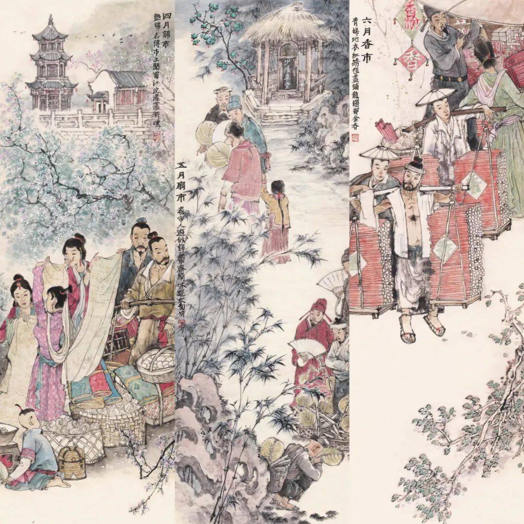 《成都十二月市》组图是由成都市文联组织,成都市美术家协会姚叶红、陈志才、钱磊三位艺术家联袂完成的一套精美国画作品。从构思到成品,仅用了10天时间,再现古代成都十二月市盛况。天府文化就在这充满烟火气的市集中,融汇、衍生、传承。