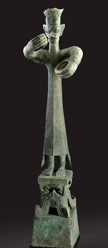 中原文明与三星堆文明仅从其服装式样、着装形态来比照,两者都有极其相似之处,甚至可以说有异曲同工之妙。只是中原农耕文化服饰随社会的统一、稳定、繁荣,人口的增长和农业生产率的提高,服饰逐渐向宽衣大袖方向发展,而三星堆服饰,就像流星划过天空,不知何因戛然而止。即便如此,我们也可以初步断言:共同依托于农耕文化条件下的服装服饰,其基本式样、穿戴方式总体上是趋同的。