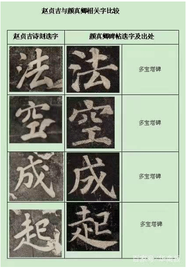 为进一步求证赵贞吉这幅字的书法特色,我们又将拓片照片发给岳峰院长。他回复说,这块碑,他十分熟悉,曾几度带学生去考究:“此刻书法从审美(风格或美感上)可概括为:洒脱开张、落落恢宏,光风霁月中隐含浓郁的悲悯之情。其中有的字为学宋人黄庭坚笔意,当然黄庭坚体势开张似有像‘颜’而实则取‘柳’,柳则取欧颜而成。此幅大洲居士署款石刻中‘起、癡、壞、欲、與、来、度’等字明显中宫凝聚、点画开张,有明显的‘黄柳’之法,因此这幅石刻应是主要嗣法‘颜黄’之作。”