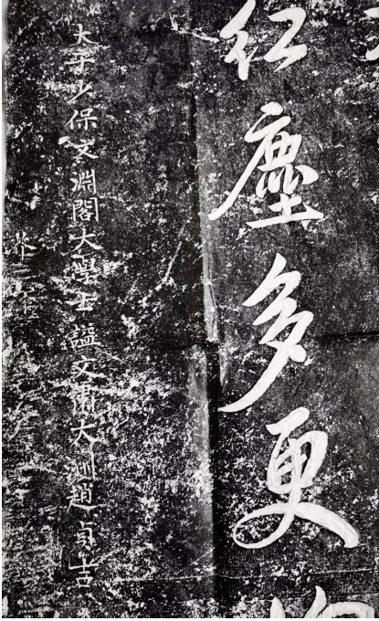 虽然整张拓纸陈旧,有少数岁月沉积的斑点,但确实十分清晰,连肉眼看不实的落款“太子少保文渊阁大学士谥文肃大洲赵贞吉”字样都能看明白。