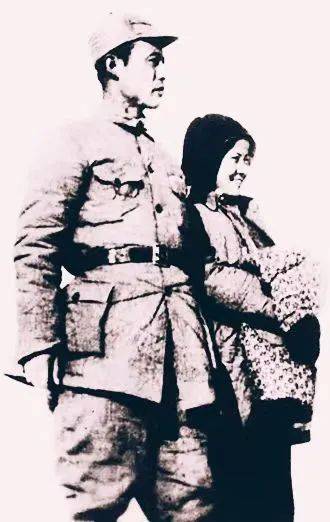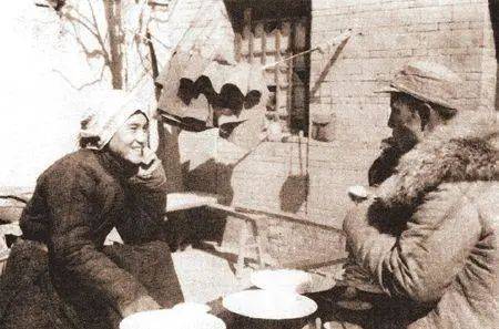 抗战时期,吕正操司令员(右)与老乡亲切交谈