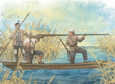 白洋淀中芦苇荡,雁翎神兵勇士藏。