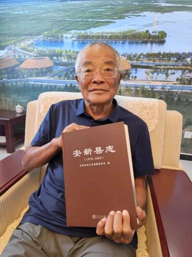 吕彤羽深情手捧《安新县志》(胡山 摄)