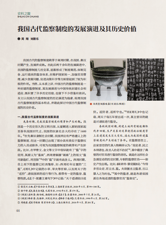 【历史文化】我国古代监察制度的发展演进及其历史价值‖周翔 刘朋乐